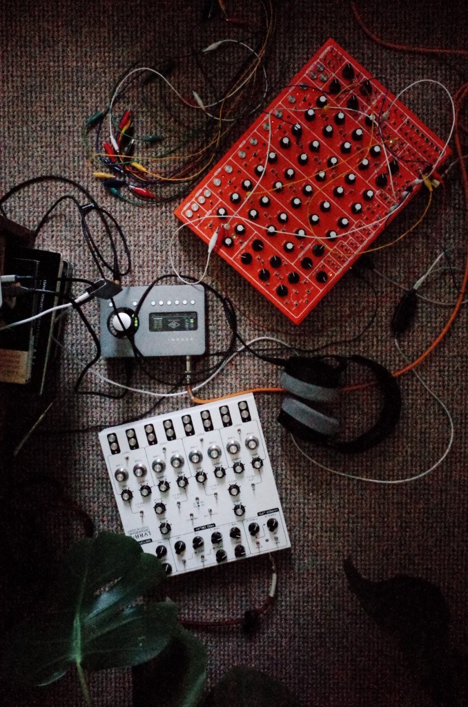 In preparation for the project, extensive practice sessions were conducted to develop familiarity with the instruments, taking place in an informal and domestic setting [C.1]. Techniques like live hand-patching, control and relinquishment exercises, serendipitous patching and free-tuning were developed during these sessions, shaping the subsequent compositional process: